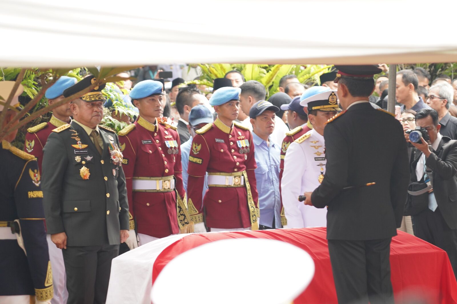 Upacara pemakaman dilaksanakan secara militer dengan Inspektur Upacara Presiden Republik Indonesia Prabowo Subianto, yang sekaligus memimpin Apel Persada. Wakil Presiden Gibran Rakabuming Raka, para pejabat tinggi negara, tokoh militer senior, serta perwakilan masyarakat juga terlihat hadir di lokasi pemakaman.