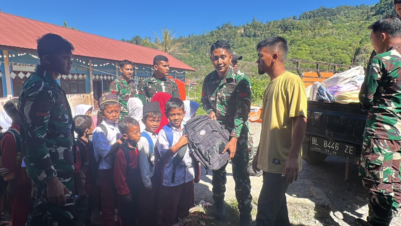 Aceh Tengah, tniad.mil.id – TNI Angkatan Darat kembali menggelorakan semangat belajar anak-anak di wilayah Rusip Antara, Kabupaten Aceh Tengah, dengan membagikan tas sekolah kepada siswa SD Negeri 10 Rusip Antara, Minggu (18/1/2026). Kegiatan ini menjadi bentuk kepedulian nyata TNI AD terhadap dunia pendidikan, khususnya bagi anak-anak yang terdampak bencana banjir.