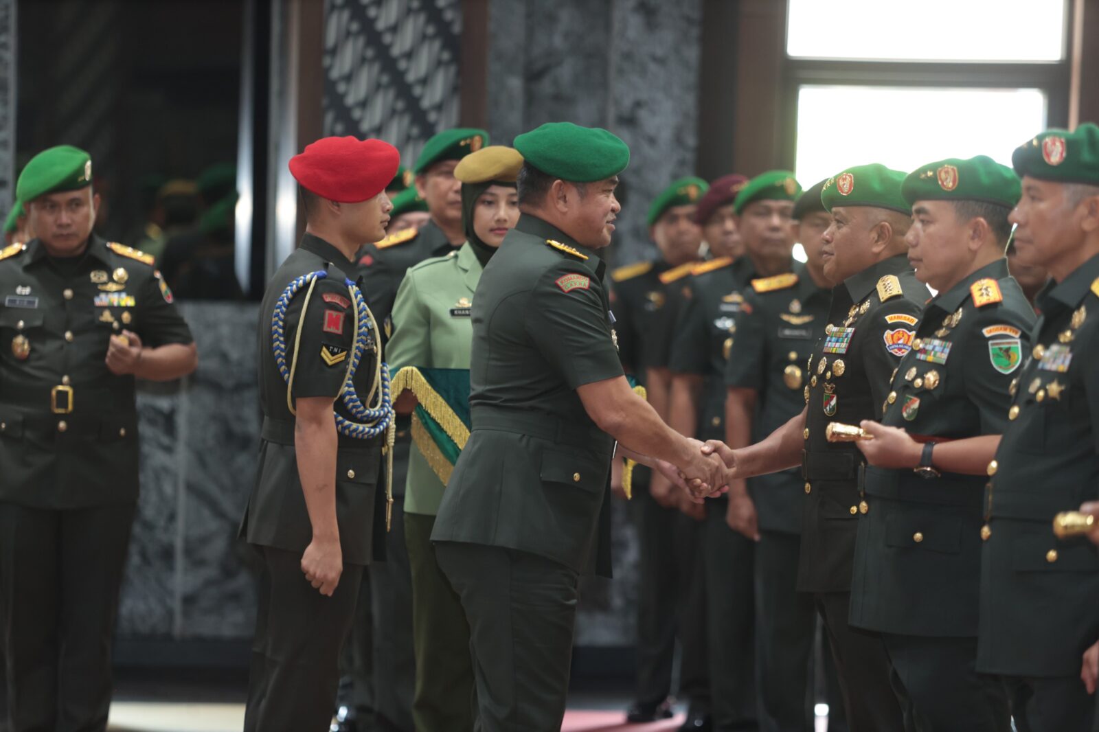 JAKARTA, tniad.mil.id – Kepala Staf Angkatan Darat (Kasad) Jenderal TNI Maruli Simanjuntak, M.Sc., memimpin acara Penyerahan Jabatan dan Serah Terima Jabatan (Sertijab) sejumlah pejabat strategis TNI Angkatan Darat di Markas Besar Angkatan Darat (Mabesad), Jakarta, Senin (8/9/2025).