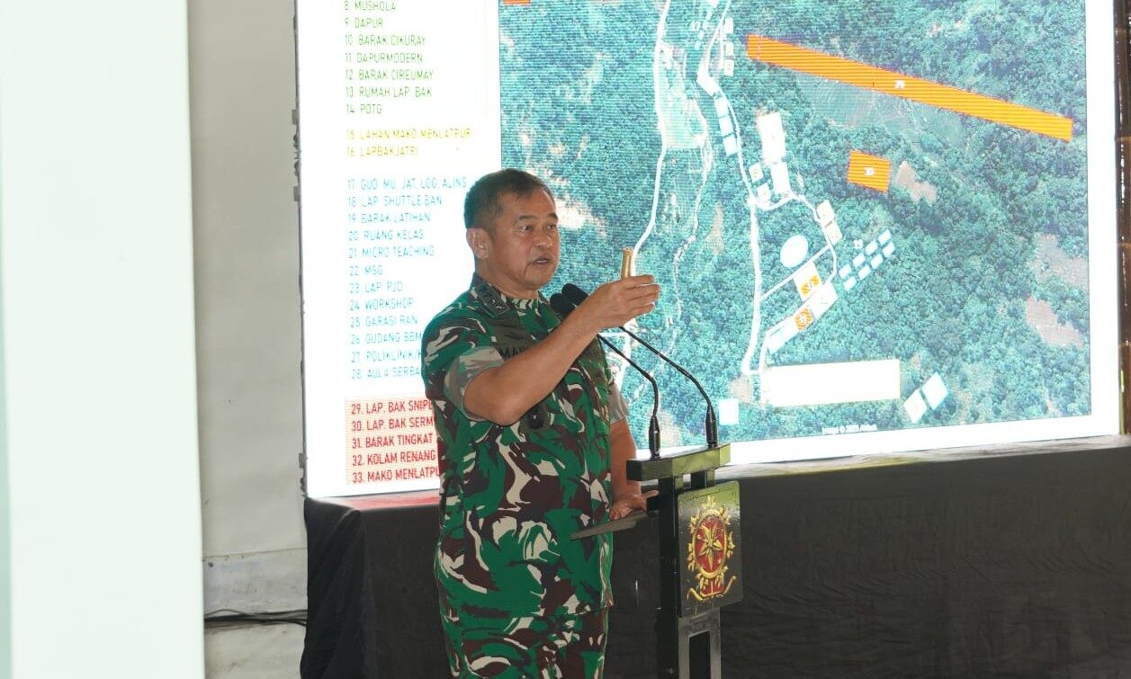 Dalam rangkaian kegiatan tersebut, Kasad dan para pejabat utama Mabesad juga meninjau secara singkat pembangunan dan renovasi fasilitas Menlatpur Kostrad yang diproyeksikan sebagai sarana pendukung latihan terpadu bagi satuan-satuan TNI AD. (Dispenad)