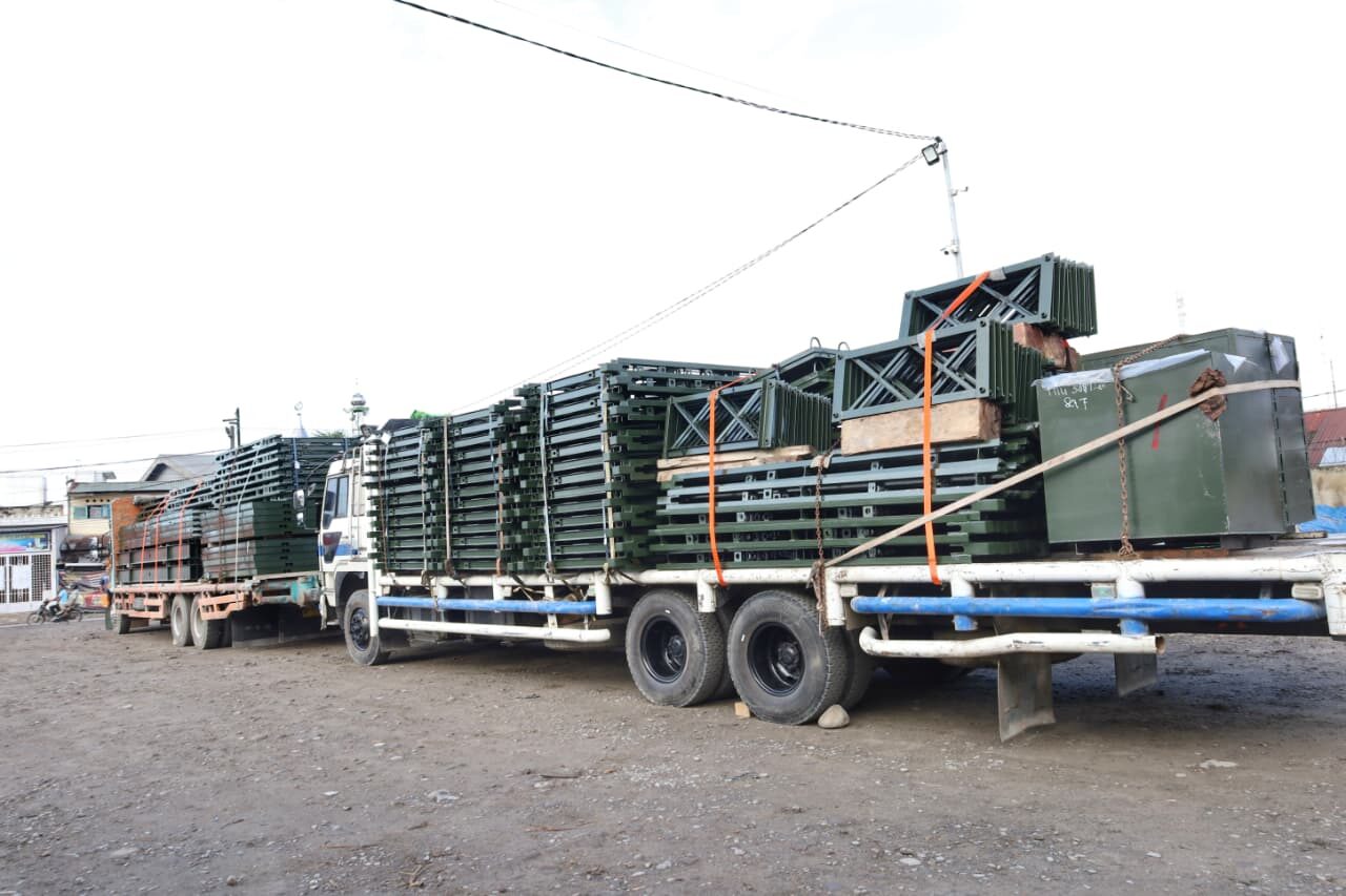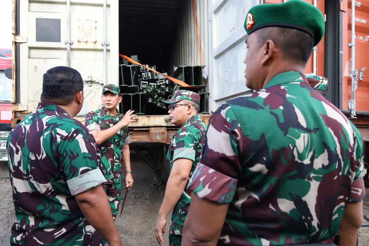 Di lokasi, Pangdam menyaksikan proses pemindahan dan pemuatan material ke atas truk, sekaligus pelepasan pergeseran menuju titik pembangunan. Pemeriksaan dilakukan secara menyeluruh guna menjamin tidak ada komponen yang hilang, tertukar, maupun kurang sebelum diberangkatkan.