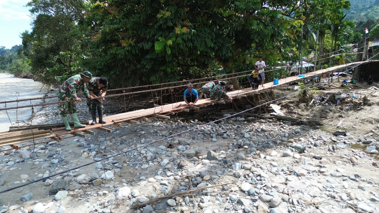 Danposramil Darul Hasanah, Peltu Dedi Cahyadi, menyampaikan bahwa perbaikan jembatan dilakukan secara gotong royong sebagai wujud kemanunggalan TNI dengan rakyat. Perbaikan dipercepat dengan memanfaatkan masa libur sekolah agar saat aktivitas masyarakat kembali normal, jembatan sudah dapat digunakan secara aman.