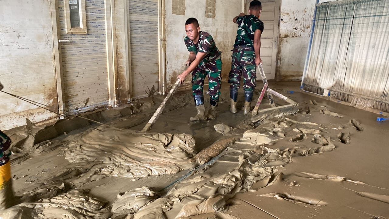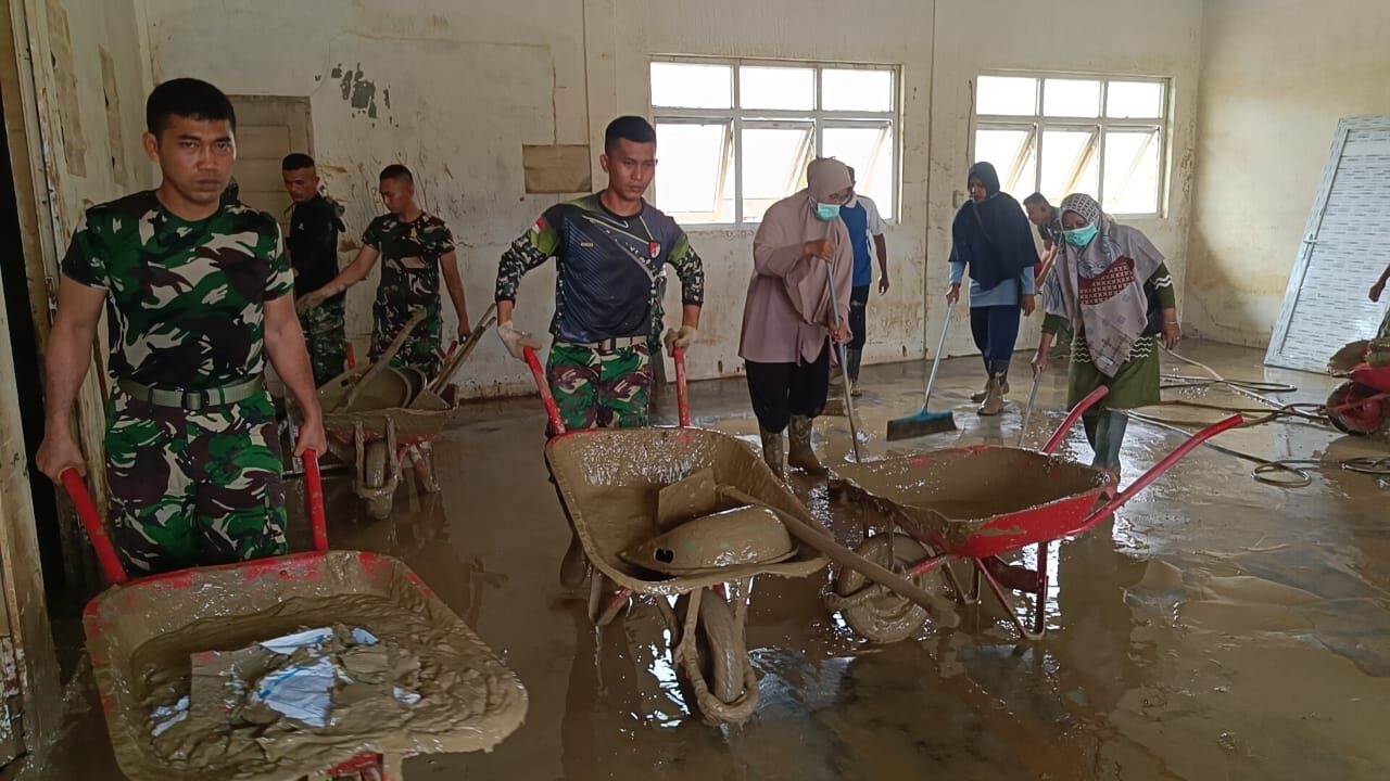 Bencana alam tersebut menyebabkan lumpur dan material banjir mengendap di ruang-ruang kelas serta fasilitas sekolah, sehingga mengganggu proses belajar mengajar. Menyikapi kondisi itu, prajurit TNI AD bergerak cepat membantu pemulihan sarana pendidikan agar aktivitas sekolah dapat kembali berjalan normal.