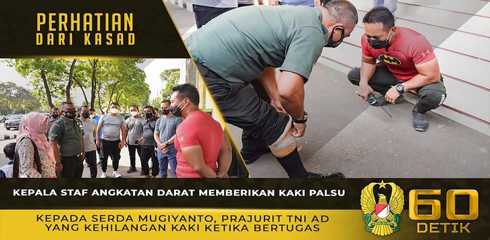 Sersan Dua (Serda) Mugiyanto, seorang Prajurit TNI AD anggota Kodim 0705/Magelang, Jawa Tengah yang mengalami…