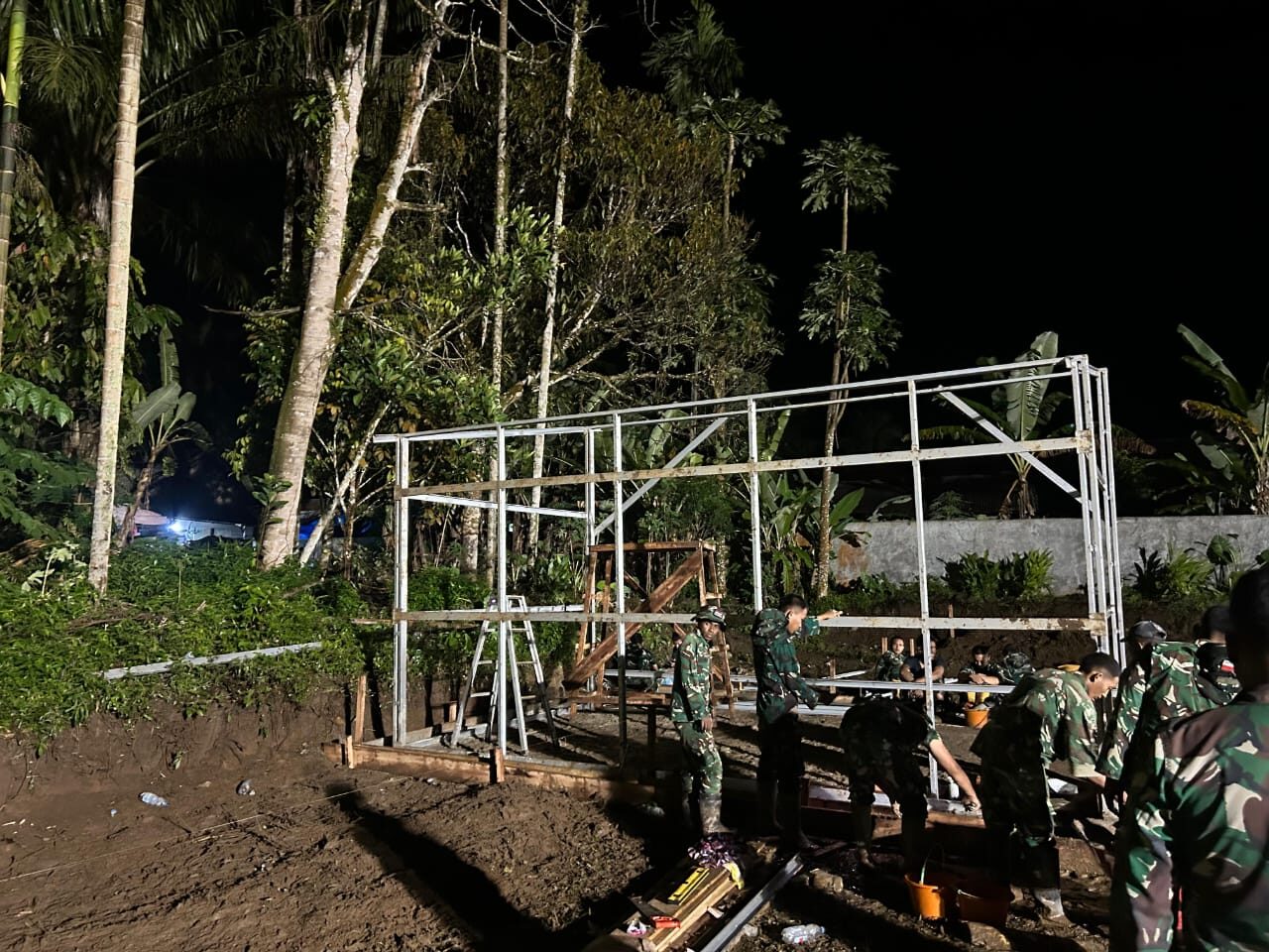 Personel Yonif TP 897/SGL dan Kodim 0304/Agam terlibat langsung di lapangan dengan mengerahkan tenaga dan kemampuan yang dimiliki. Dengan semangat kebersamaan dan pengabdian, seluruh personel bekerja secara terkoordinasi guna memastikan pembangunan Huntara berjalan sesuai rencana.