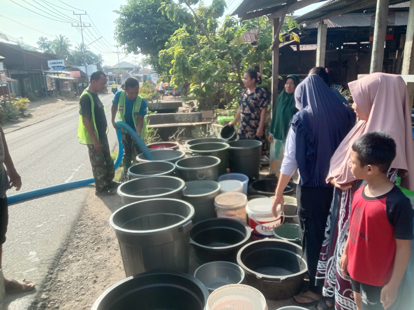 Penyaluran air bersih dilakukan karena pascabanjir bandang, sejumlah sumber air dan sumur warga tercemar material lumpur dan belum dapat digunakan secara normal untuk kebutuhan sehari-hari.