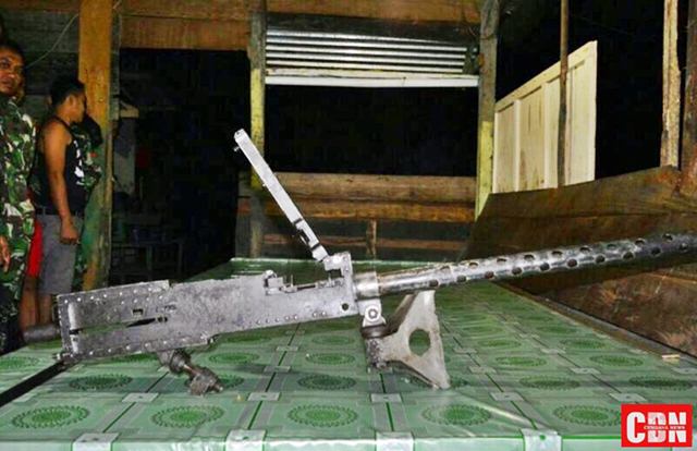Satu pucuk senjata api (Senpi) yang diberikan sejumlah warga binaan Satgas Pamtas RI-PNG Yonif 122/TS itu, yakni Senjata Mesin Berat (SMB) jenis Browning Machine Gun (M2 Browning) kaliber 50 mm bernomor U.S. 712912 yang diproduksi Negara Amerika Serikat, Jumat (15/4/2017).